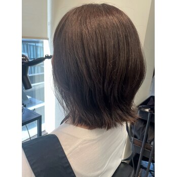 スタイリングが楽なくびれボブ、オリーブブラウン